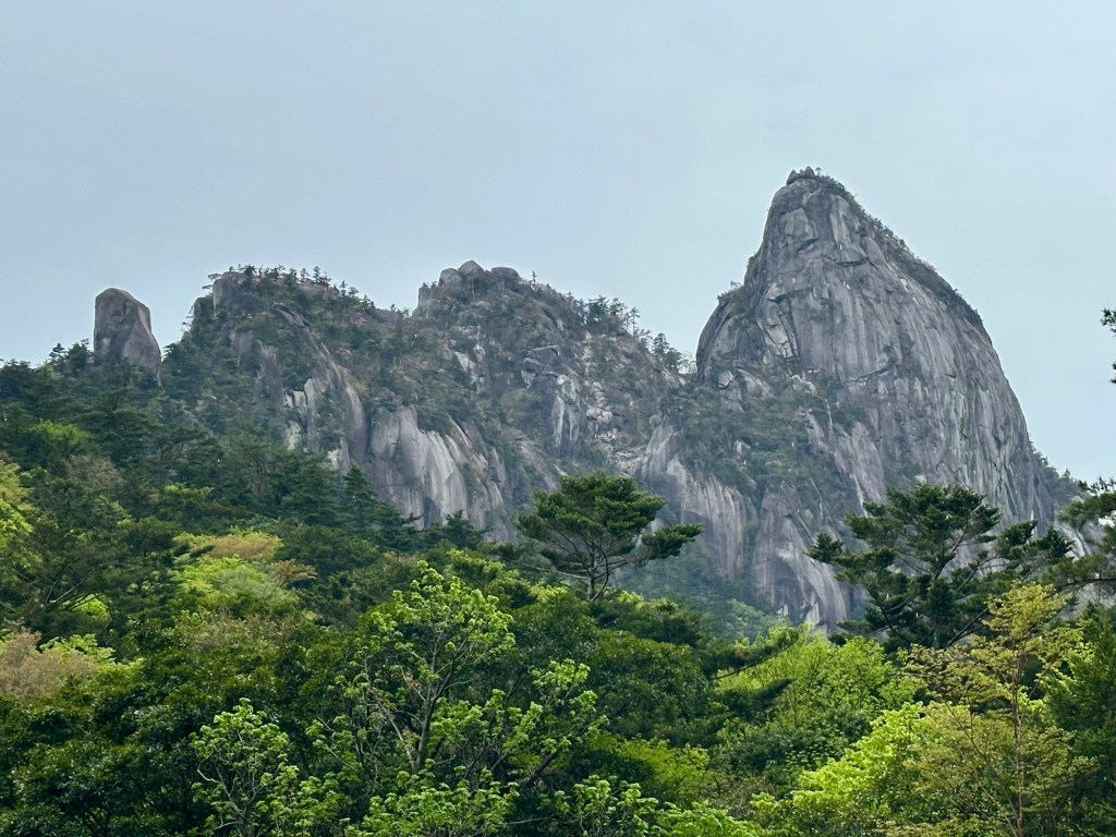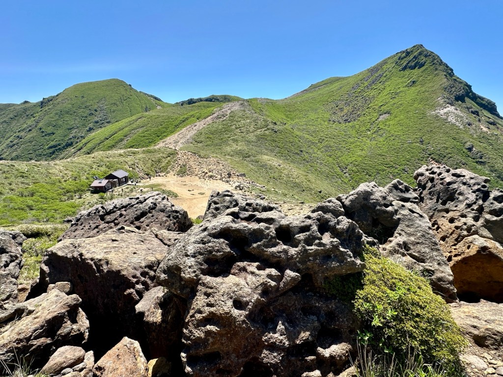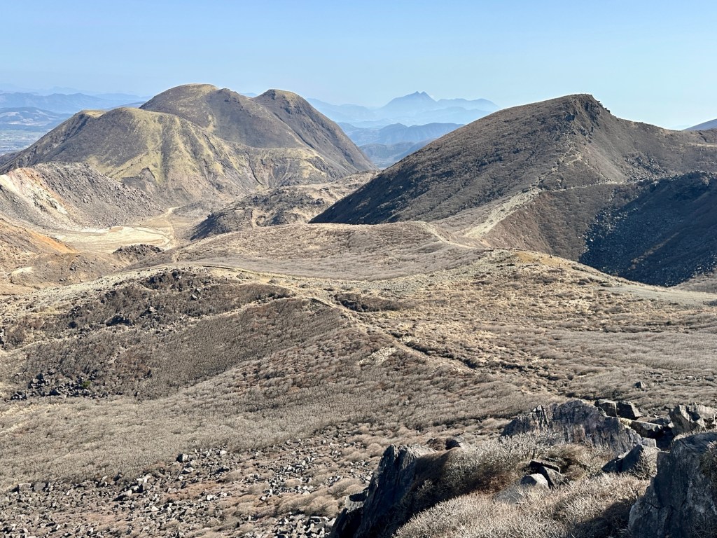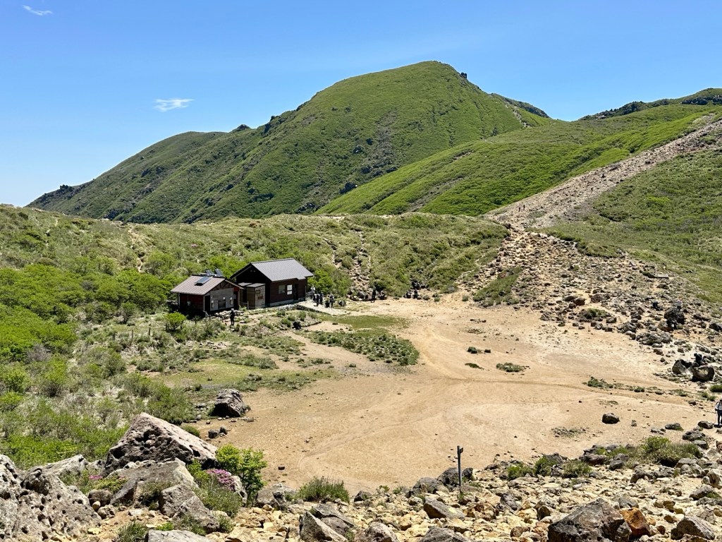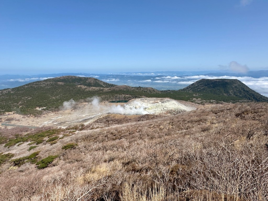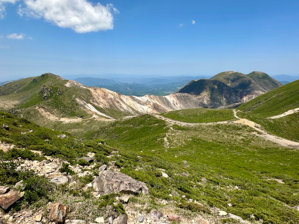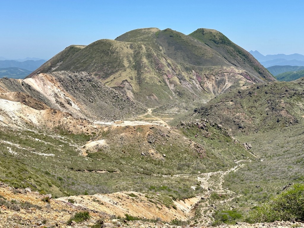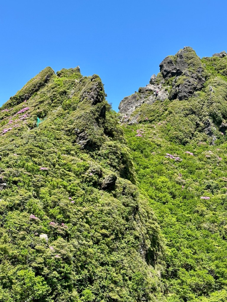 平日で雨上がりと言うこともあり一般登山者は少なめでしたが、幼稚園園児?の一行は扇ヶ鼻へと向かっていました。天気は良かったのですが、風が強く吹いていて久住山山頂では岩陰で風を避けつつ展望を楽しみながら昼食を頂きました。下山は往路と同じルートで下山しました。ミヤマキリシマの開花状況は全体的にはまだ2〜3分咲きといった感じでした。下山後は翌日の由布岳登山に備え湯布院温泉にて宿泊、ホッコリしました。最終日は正面登山口から東峰を目指し登りました。由布岳は麓から見ると新緑のグリーンが輝いていて山頂が近くになるにつれて開花し始めたミヤマキリシマが山の斜面にパッチワークのように咲いていて綺麗でした。なお、東峰山頂からお鉢巡りコースを見ると西峰から通称、ゴジラの背へと下る斜面が満開のミヤマキリシマでピンク色に染まっていて存在感たっぷりといった感じでした。下山も足元に気をつけてながら無事下山、下山後は湯布院温泉にて温泉入浴してから帰路へとついて頂きました。雨天あり、花畑あり、新緑ありと変化に富んだ九州本土の山歩きを楽しんで頂けたと思います!