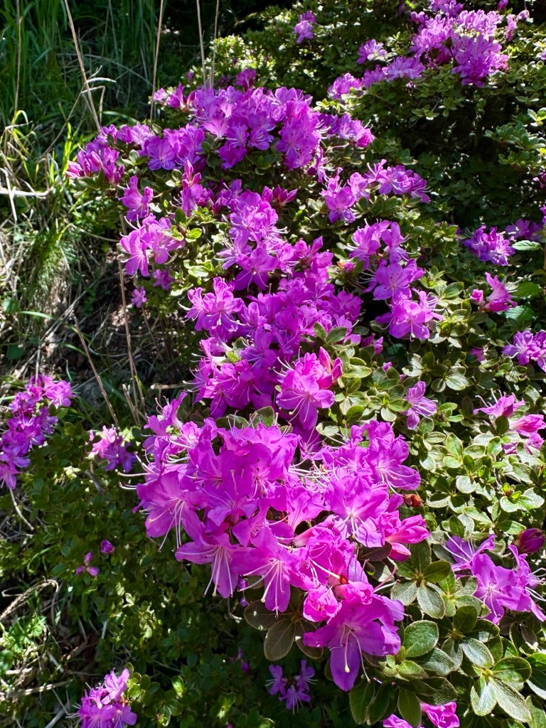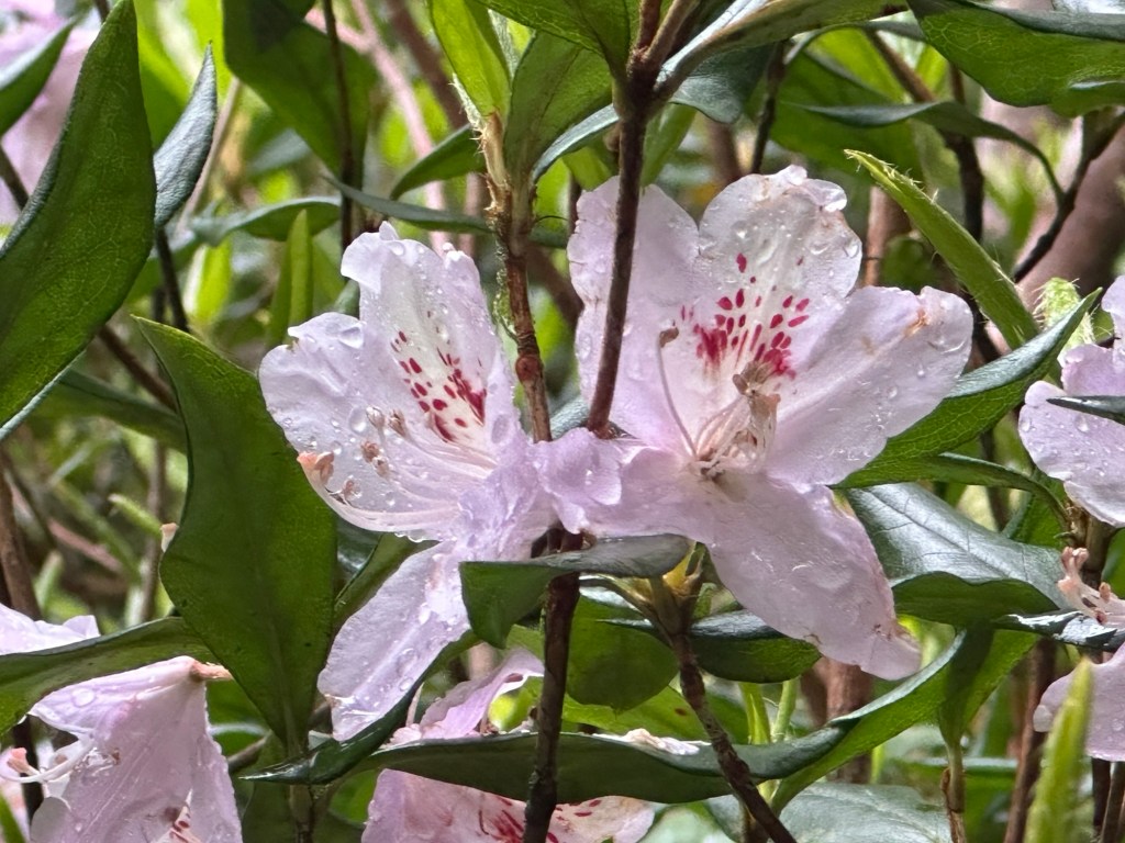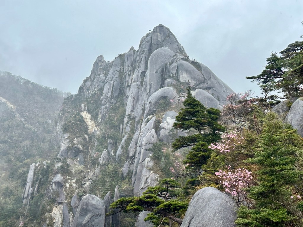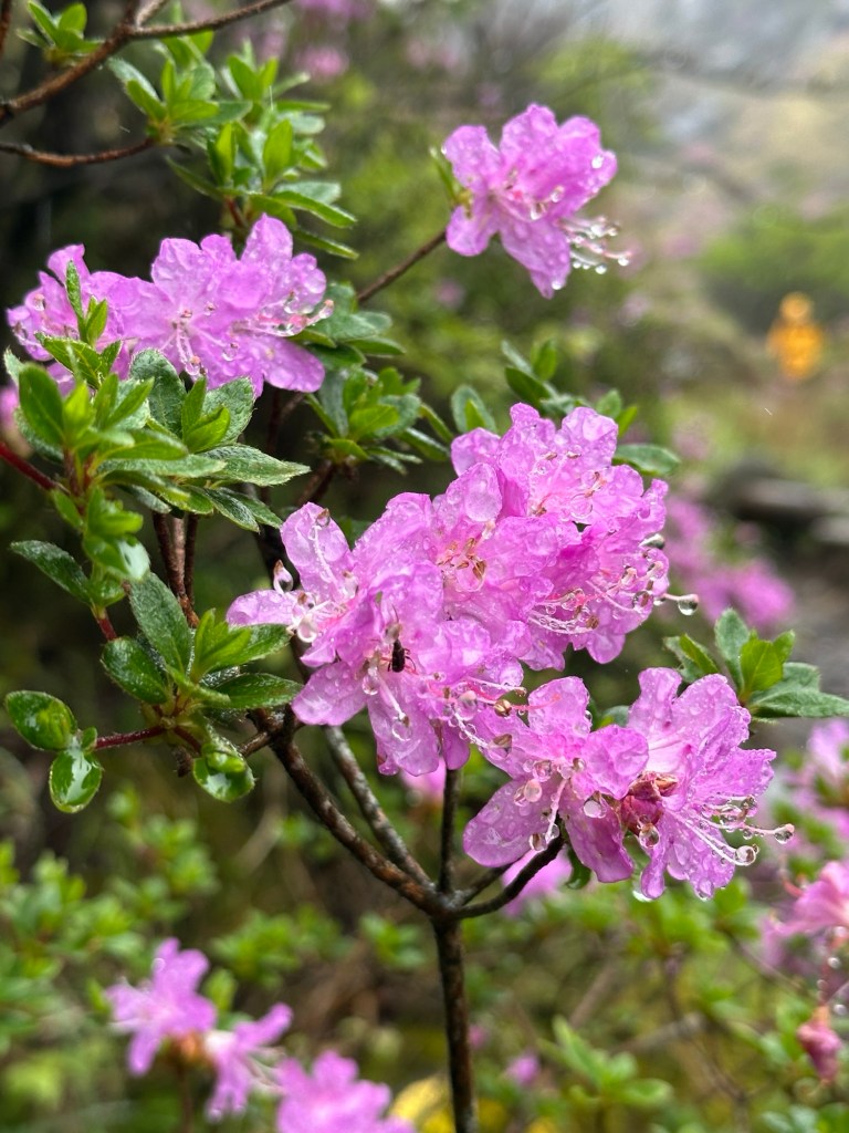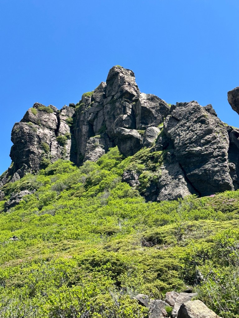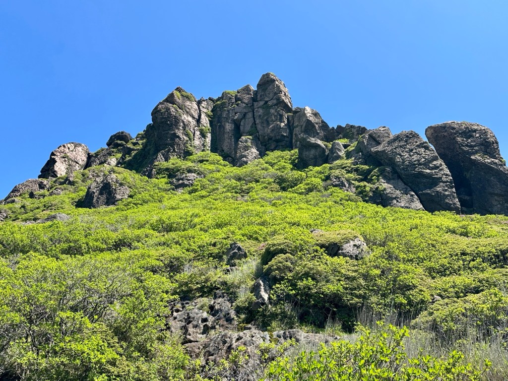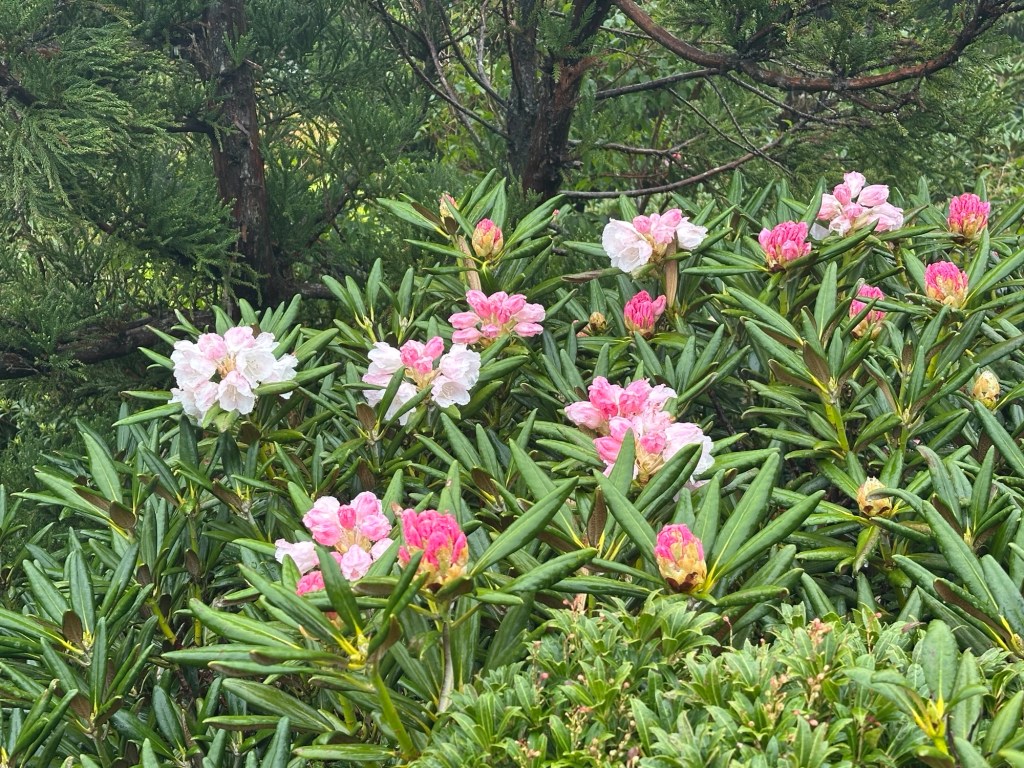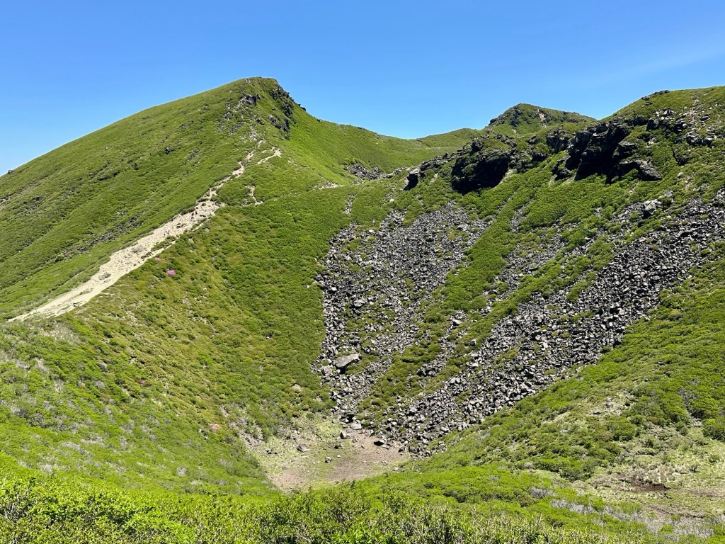 平日で雨上がりと言うこともあり一般登山者は少なめでしたが、幼稚園園児?の一行は扇ヶ鼻へと向かっていました。天気は良かったのですが、風が強く吹いていて久住山山頂では岩陰で風を避けつつ展望を楽しみながら昼食を頂きました。下山は往路と同じルートで下山しました。ミヤマキリシマの開花状況は全体的にはまだ2〜3分咲きといった感じでした。下山後は翌日の由布岳登山に備え湯布院温泉にて宿泊、ホッコリしました。最終日は正面登山口から東峰を目指し登りました。由布岳は麓から見ると新緑のグリーンが輝いていて山頂が近くになるにつれて開花し始めたミヤマキリシマが山の斜面にパッチワークのように咲いていて綺麗でした。なお、東峰山頂からお鉢巡りコースを見ると西峰から通称、ゴジラの背へと下る斜面が満開のミヤマキリシマでピンク色に染まっていて存在感たっぷりといった感じでした。下山も足元に気をつけてながら無事下山、下山後は湯布院温泉にて温泉入浴してから帰路へとついて頂きました。雨天あり、花畑あり、新緑ありと変化に富んだ九州本土の山歩きを楽しんで頂けたと思います!
