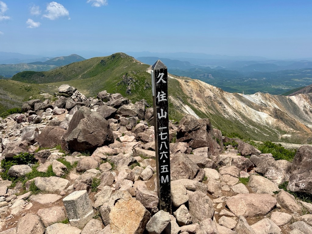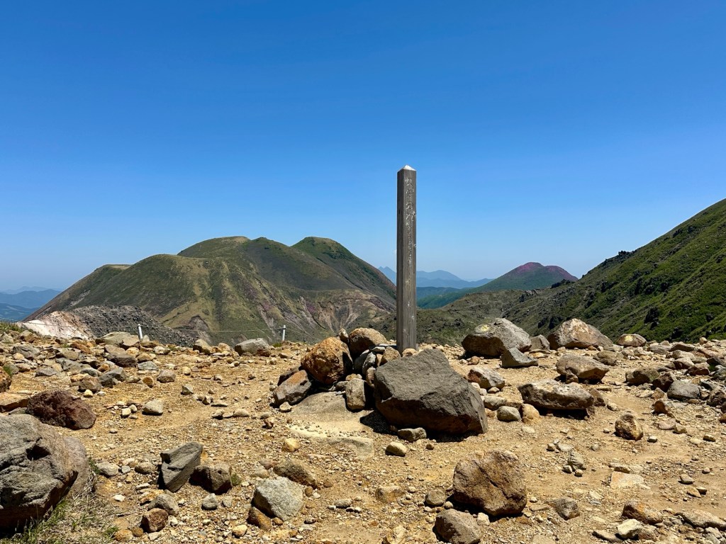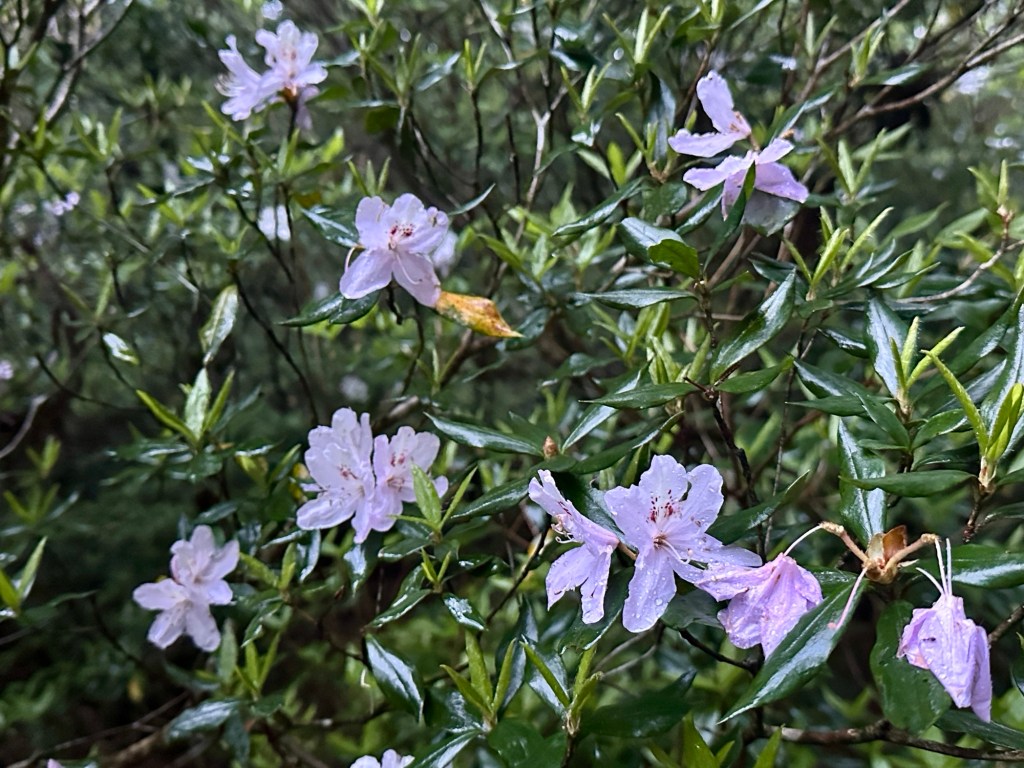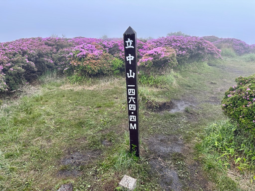 6月2日(月)〜5日(木)沖縄から来られたグループの方々をミヤマキリシマ咲くくじゅうの立中山&久住山をご案内、最終日は豊後富士こと由布岳/東峰に登って頂きました。初日はくじゅう南麓の一番水登山口から立中山を経由して法華院温泉山荘(泊)2日目はすがもり越から三俣山〜長者原へ下山予定でしたが悪天で足元が悪い事もあり三俣山登山は中止してそのまま長者原へと下山(じつは指山へ登って頂こうかと考えましたがガスっていて展望無しとの事で断念)して頂きました。2日目は筋湯温泉の宿に宿泊。3日目は朝から快晴、牧ノ戸峠から久住山を目指して歩きました。前日までの雨で足元が悪い事は覚悟していましたが気にする程のぬかるみもなくラッキー!