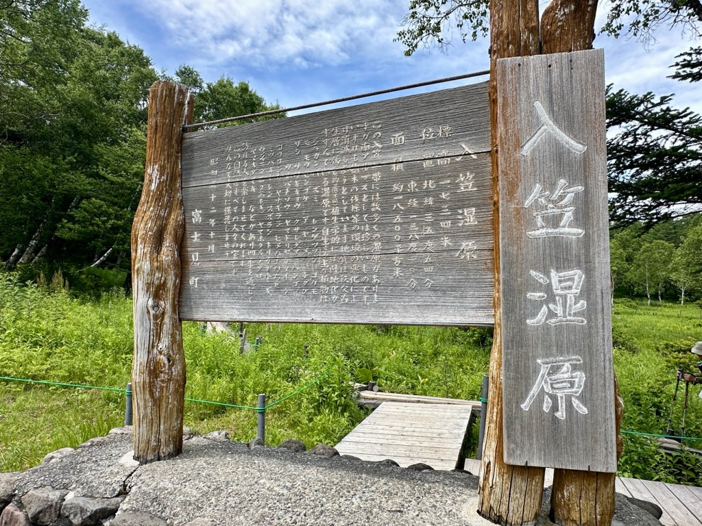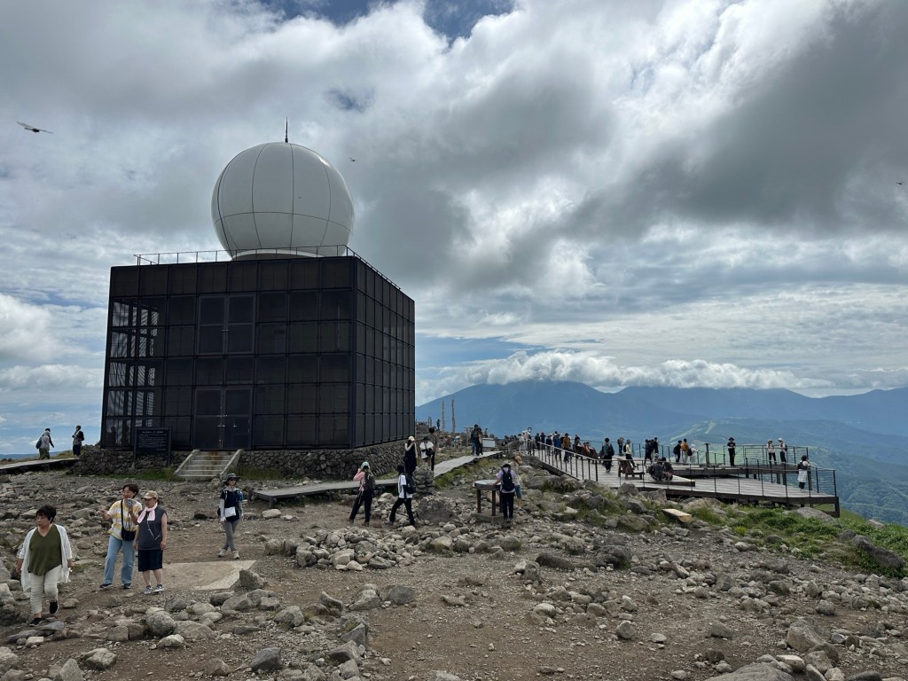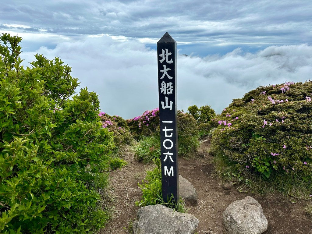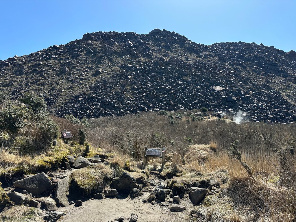 韓国岳山頂に登頂!標識の裏側は大きな火口(火口壁)となっています。