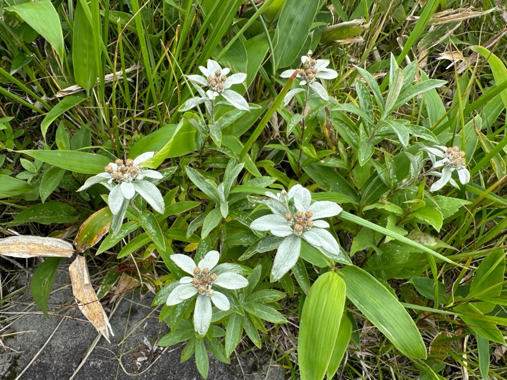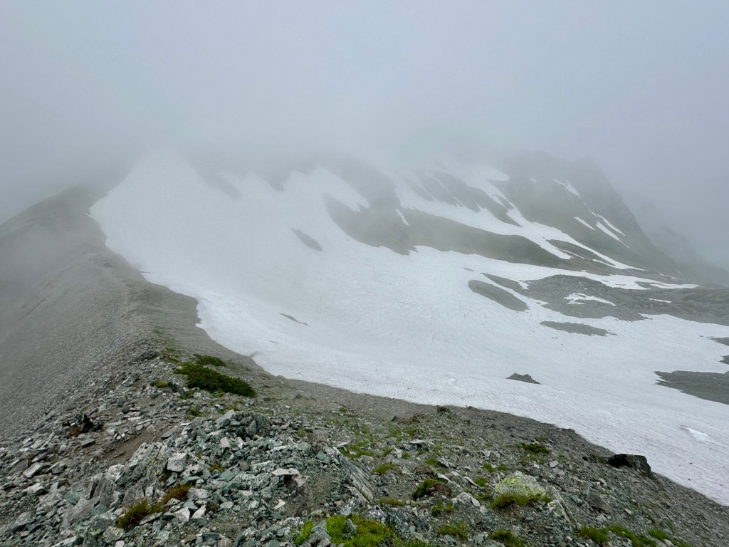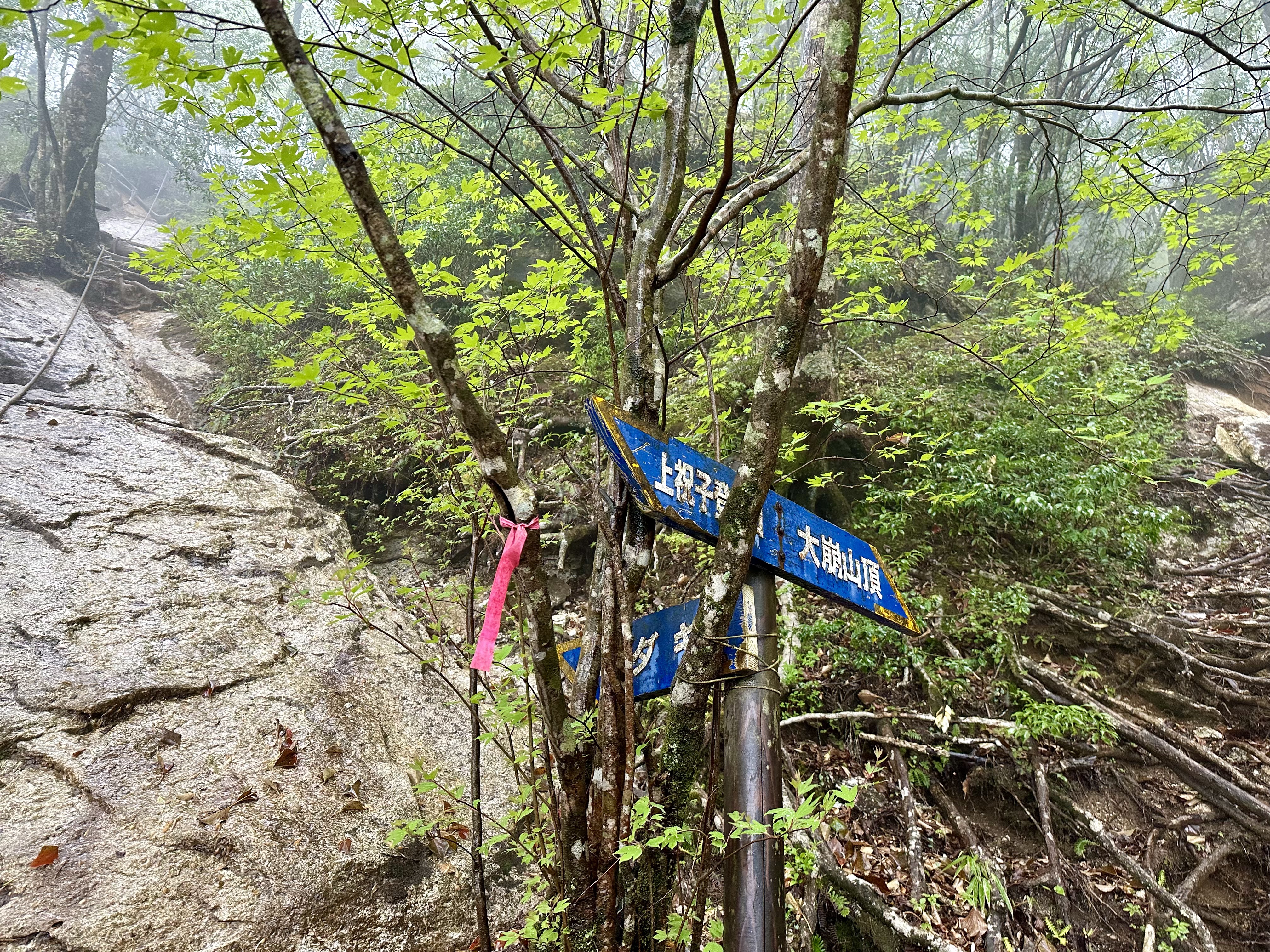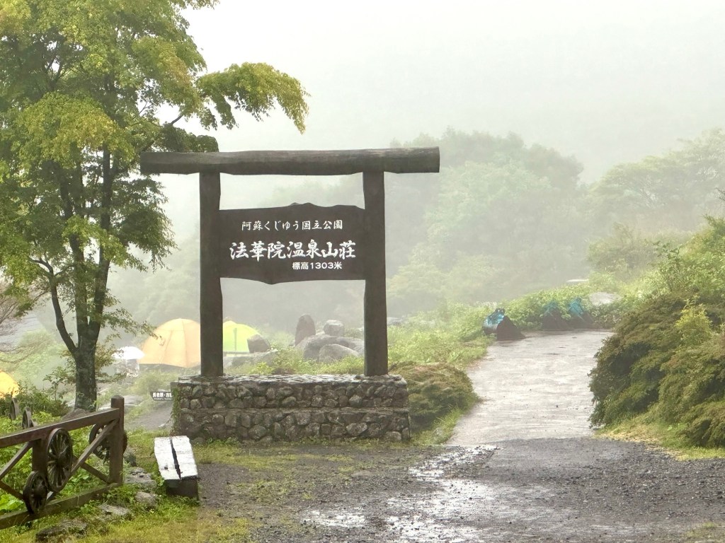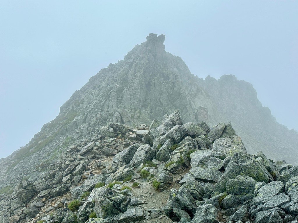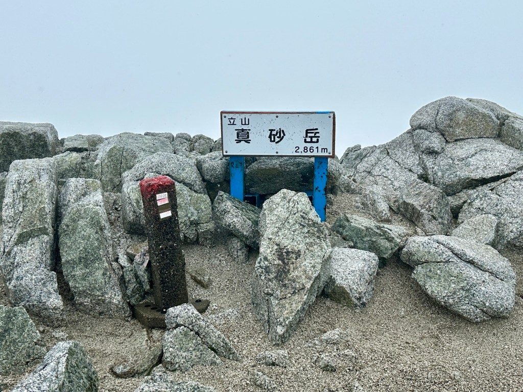 開聞岳山頂に到着。天気が良ければ素晴らしい展望を楽しめますが今回は残念ながらガスガスでした(泣)下山は往路を戻ることになります。