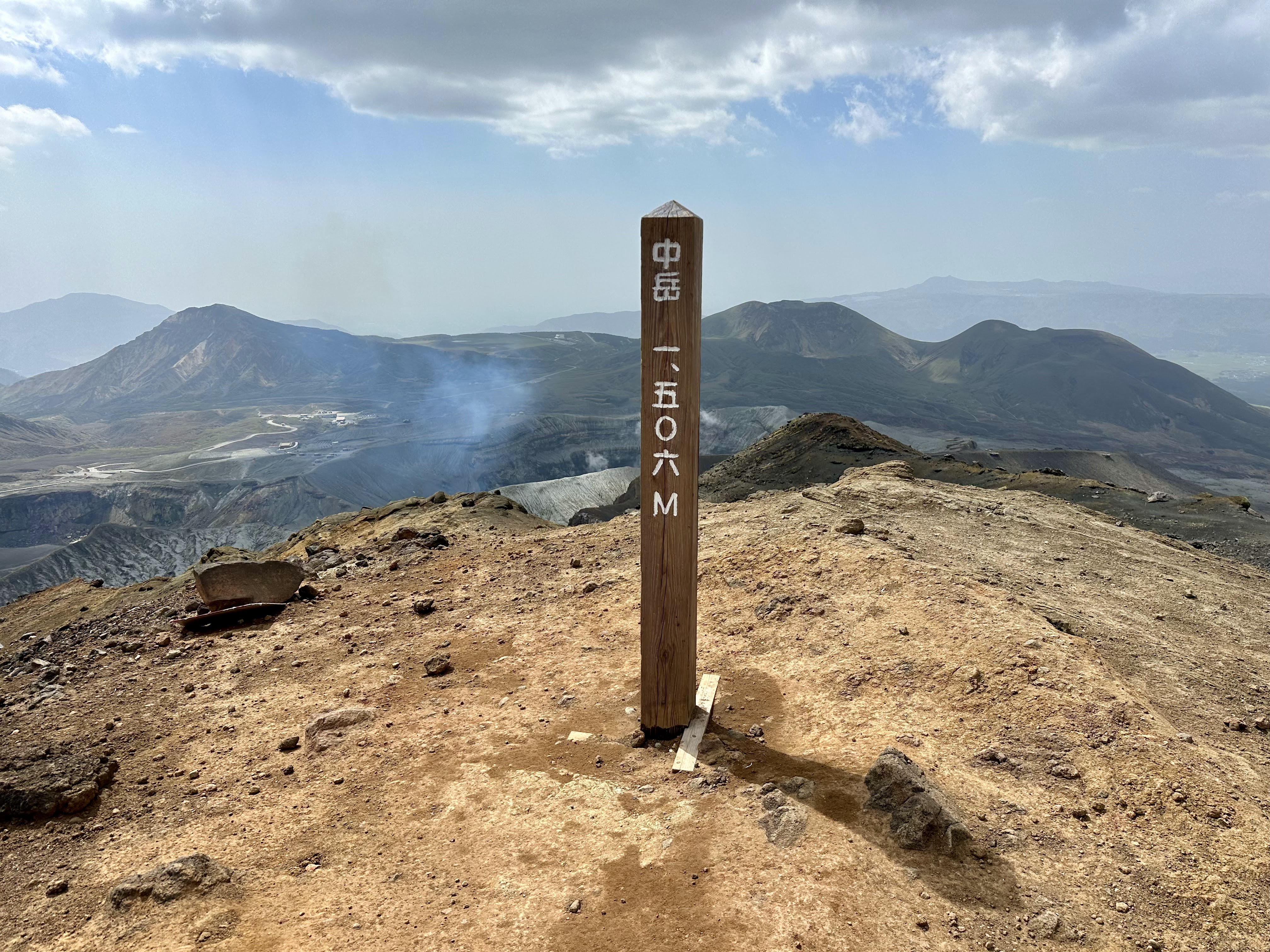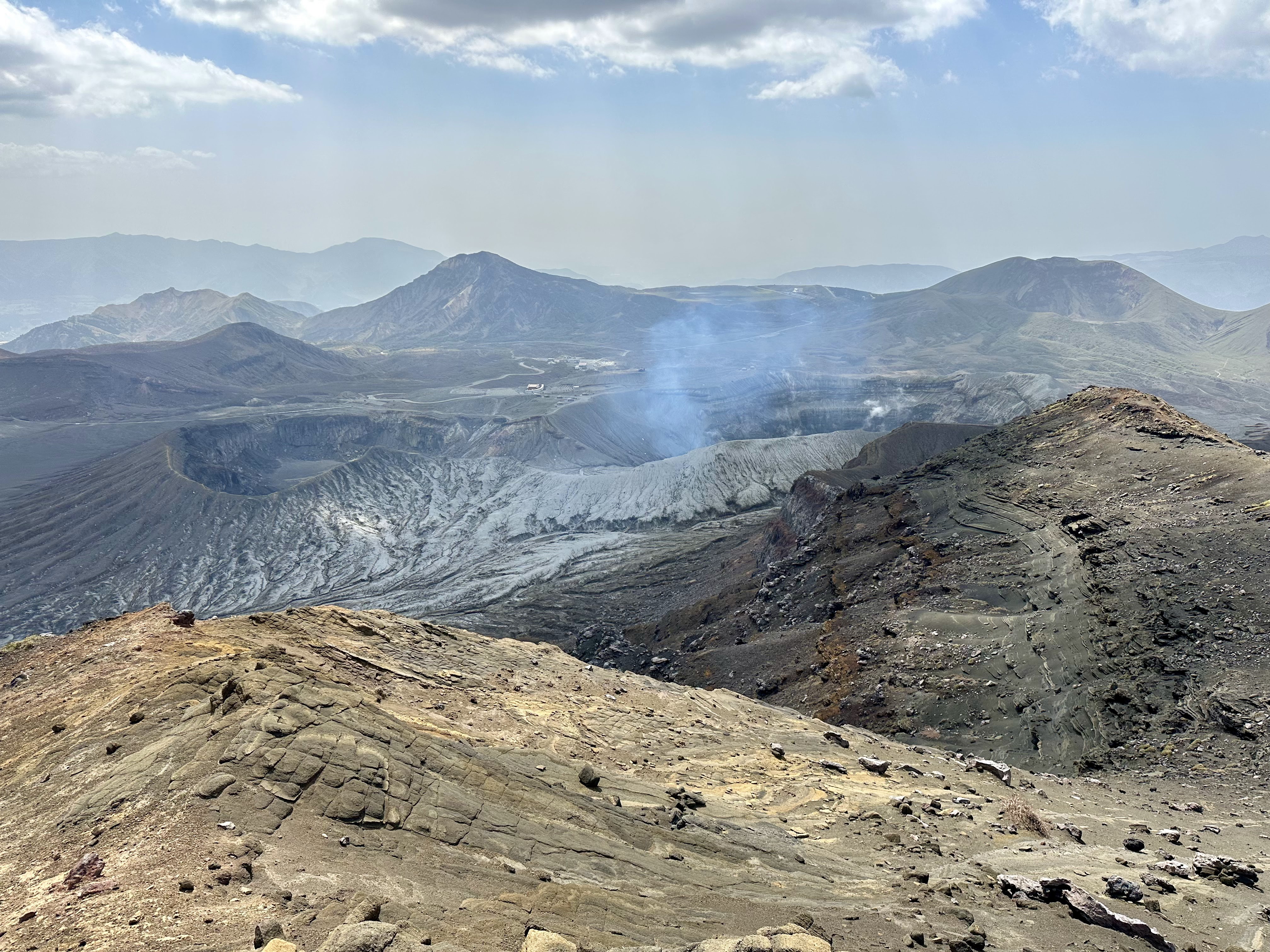 中岳山頂からは阿蘇山の火口から噴煙が上がっている様が良く見えます。