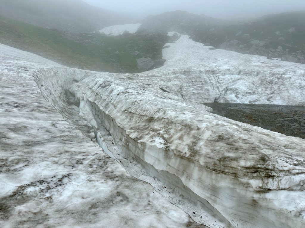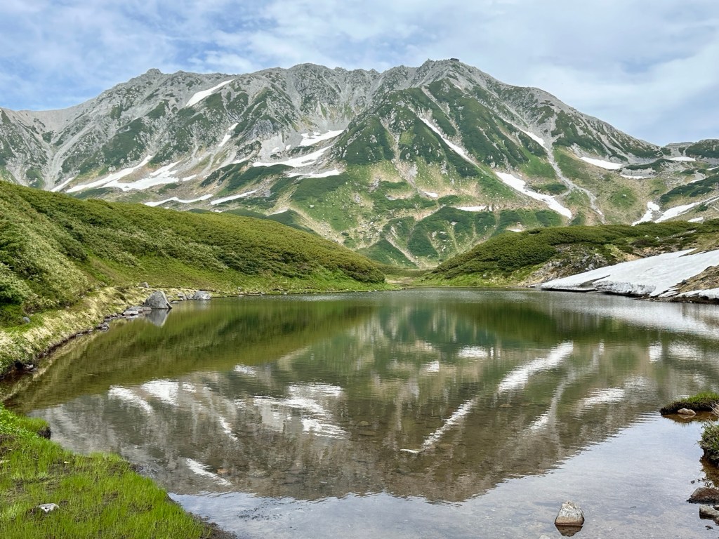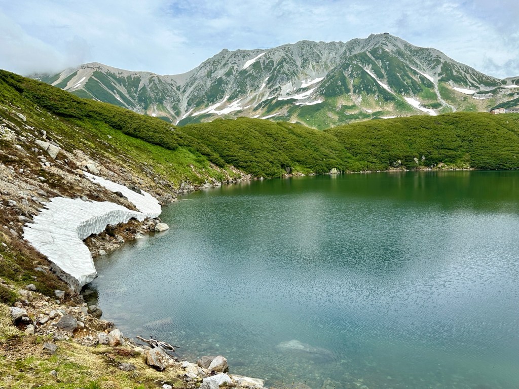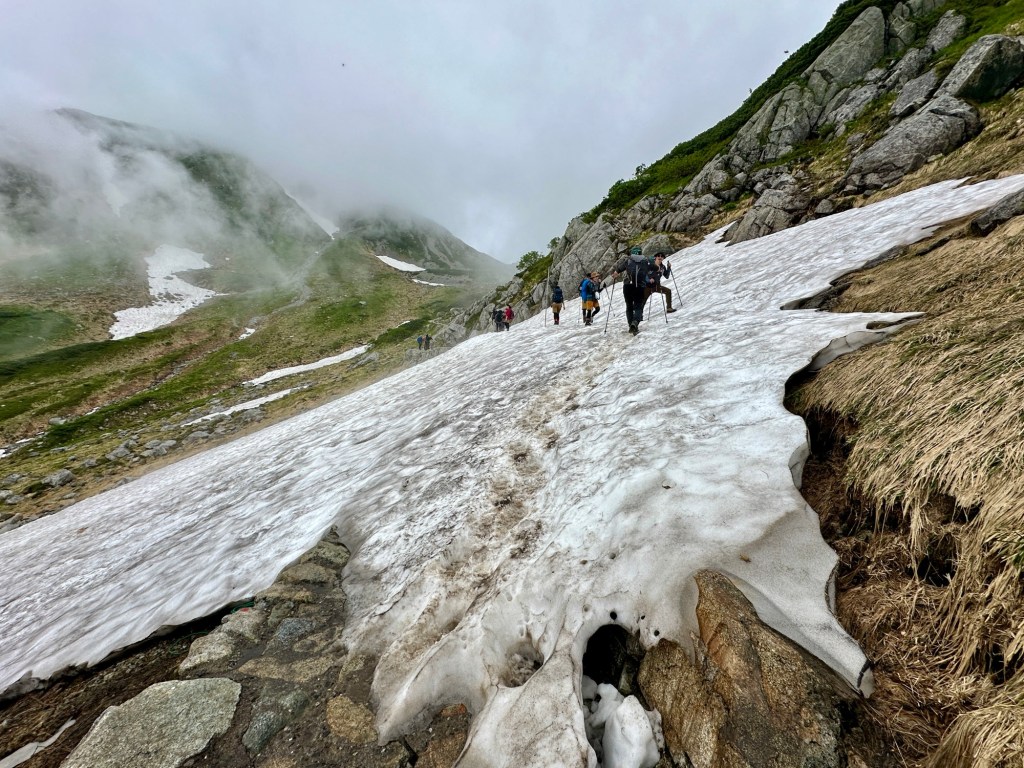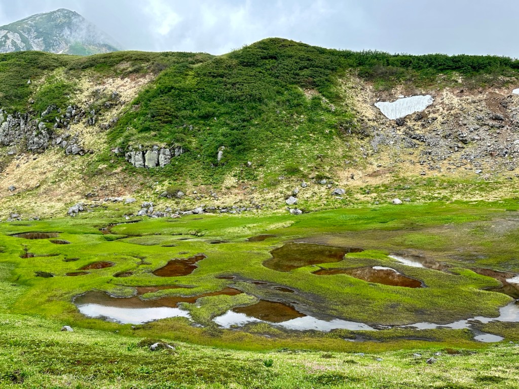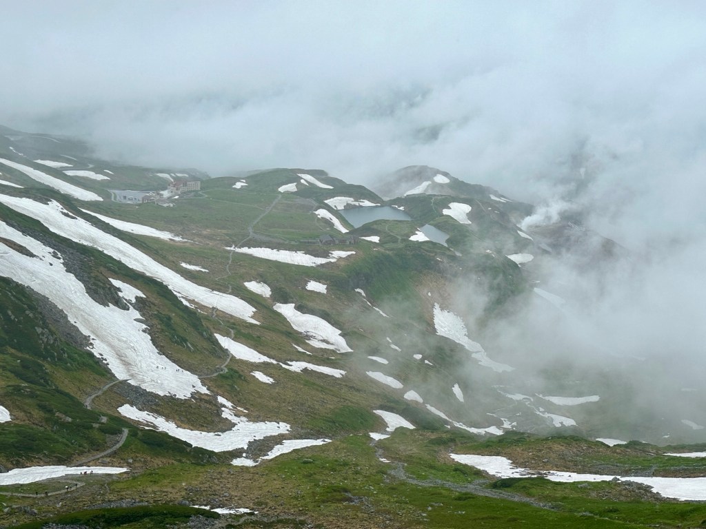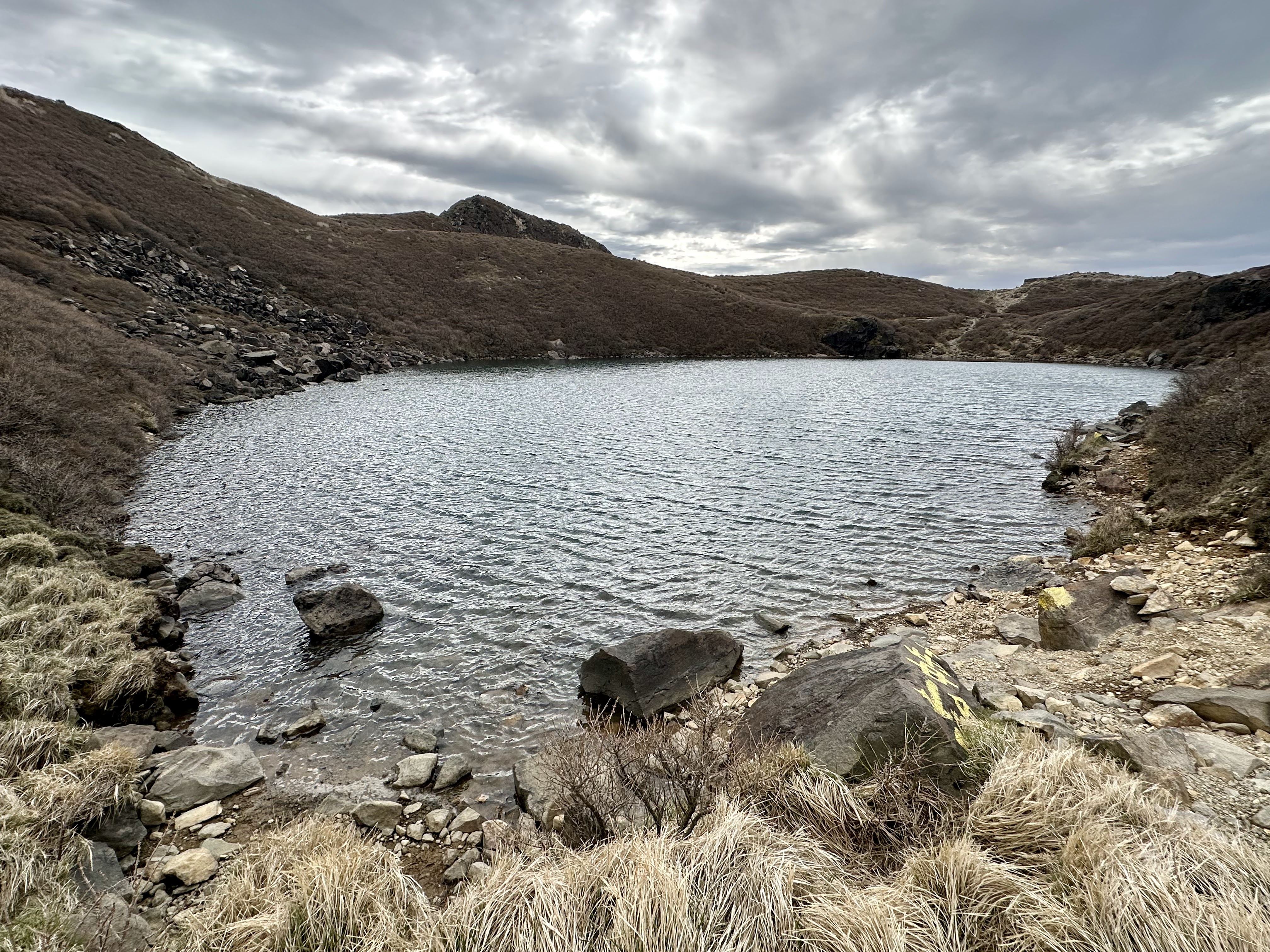 中岳へと向かう途中、御池(みいけ/火口湖)横を通過。冬は凍り氷上を歩く事が出来ます!