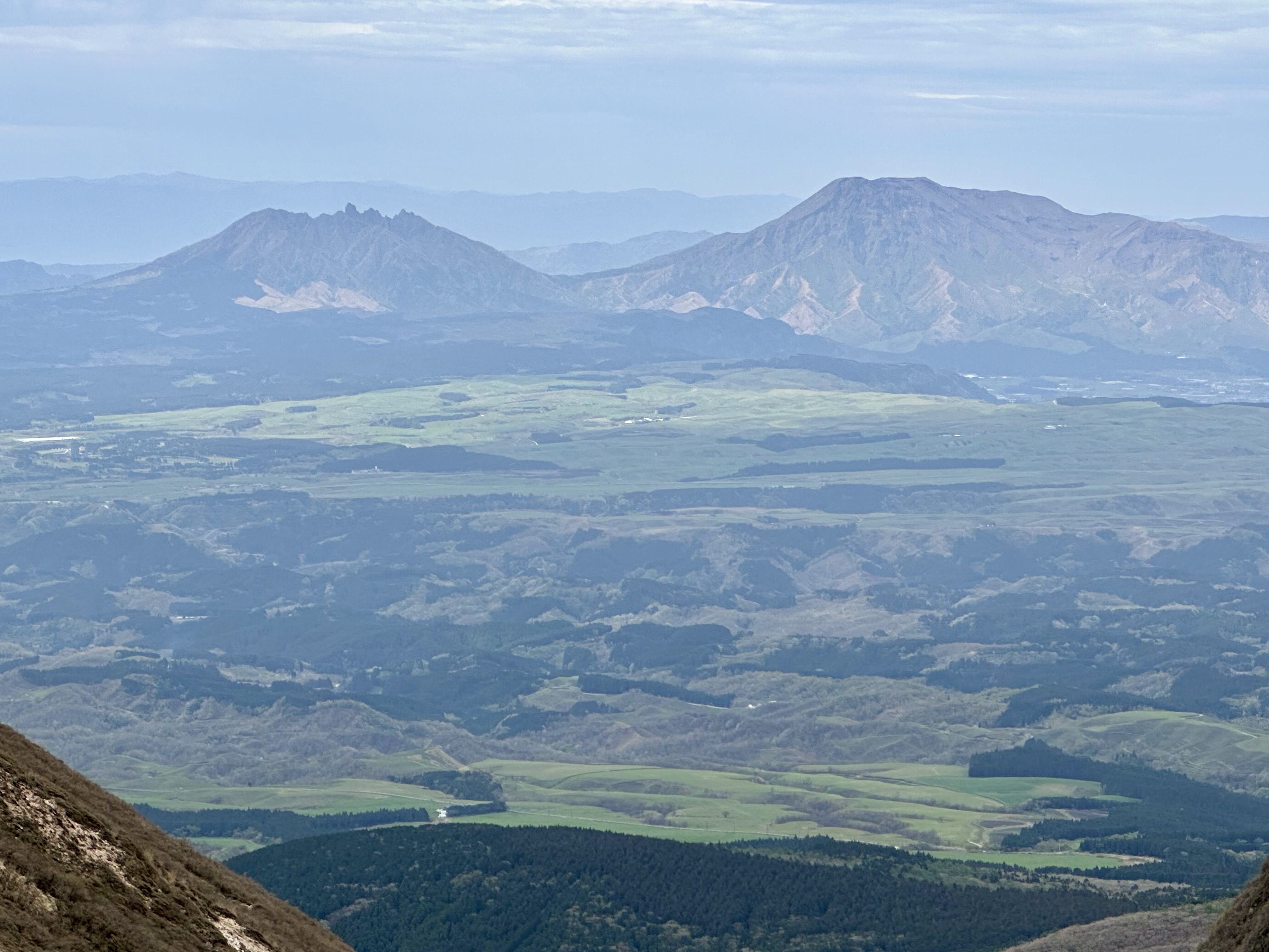 復路途中、久住別れ避難小屋前からは阿蘇山・根子岳が綺麗に見えました。