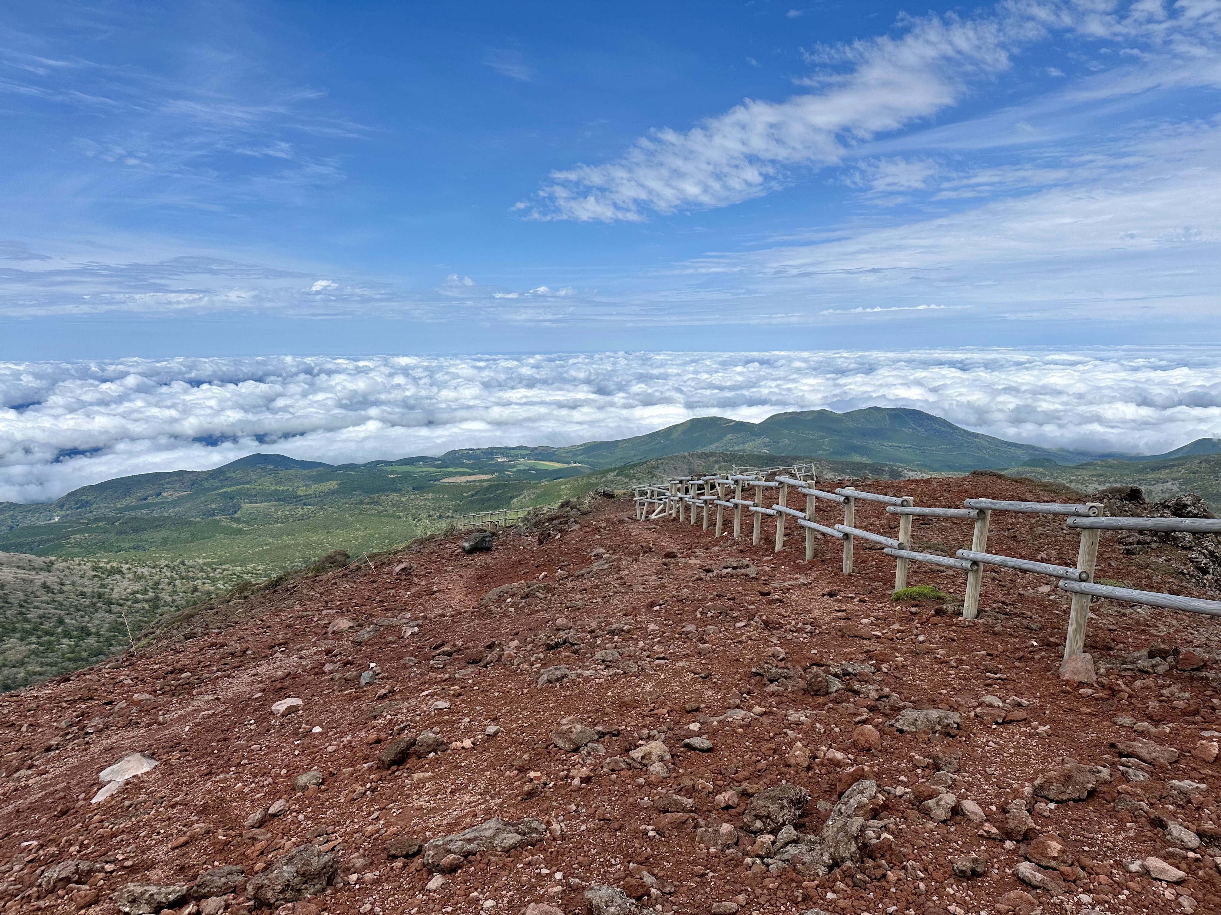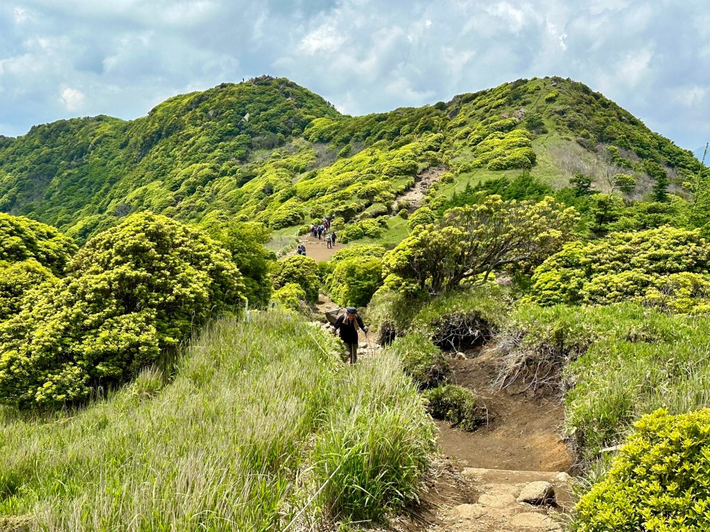 5日目(ツアー最終日)は宮崎県と鹿児島県の県境に位置する霧島連山最高峰の韓国岳に登ります。つつじヶ丘登山口より入山、韓国岳避難小屋経由で山頂を目指します。