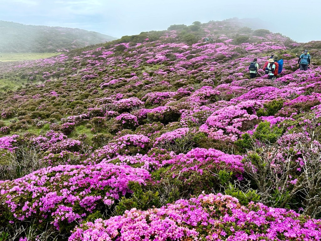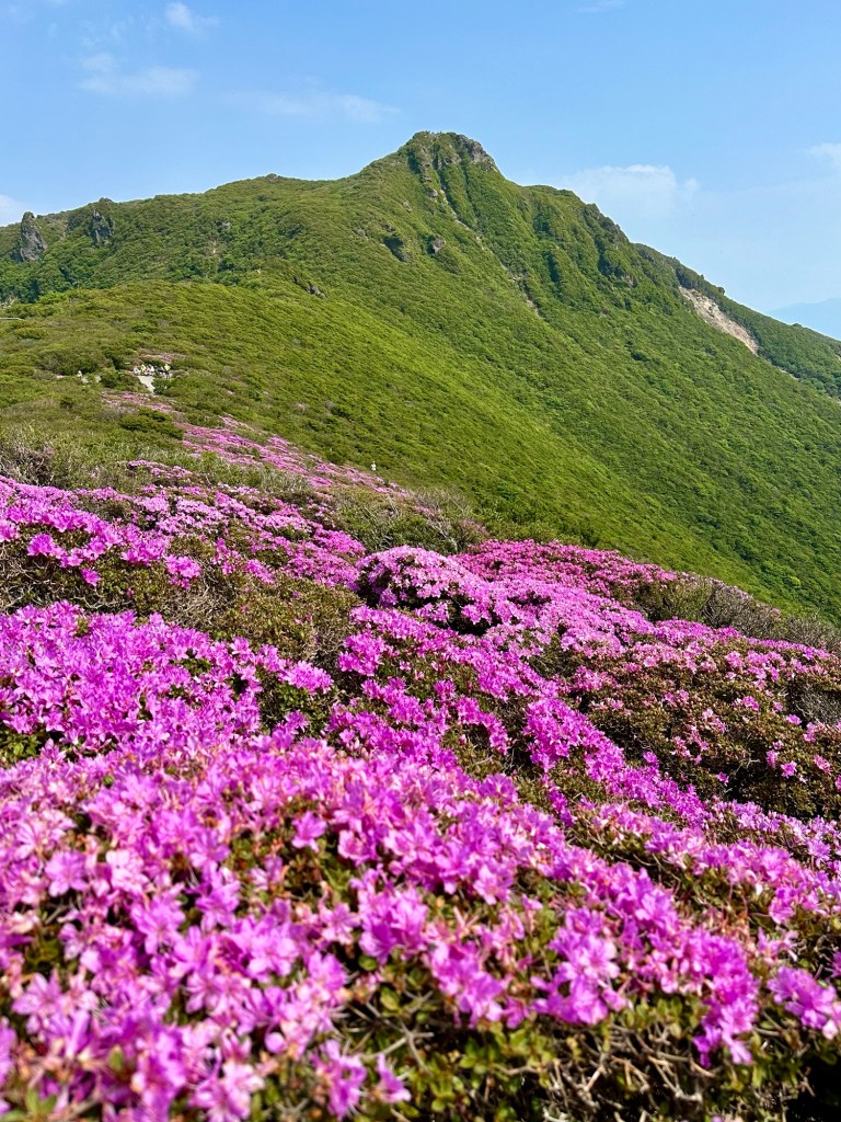 4月18日(木)~22日(月)ツアーガイディングで関東・関西からの参加者の方々を九州の日本百名山5座(阿蘇山・祖母山・くじゅう・開聞岳・霧島山)の山旅を楽しんで頂きました。山中ではミツバツツジ・アケボノツツジをはじめ沢山の山野草や素晴らしい展望を楽しんで頂きました。